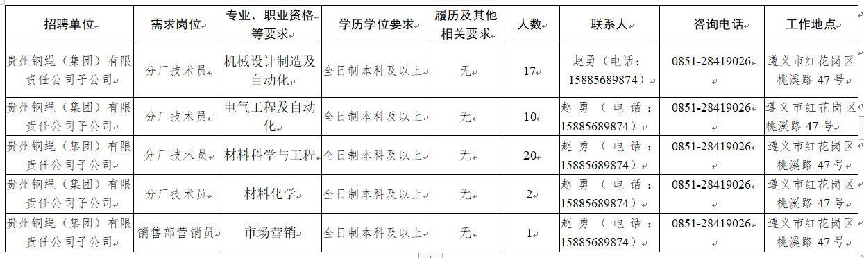 招聘工作聯(lián)絡(luò)員姓名:趙 勇,單位及職務(wù):人力資源部人事員;電話:0851-28419026;手機(jī):15885689874;