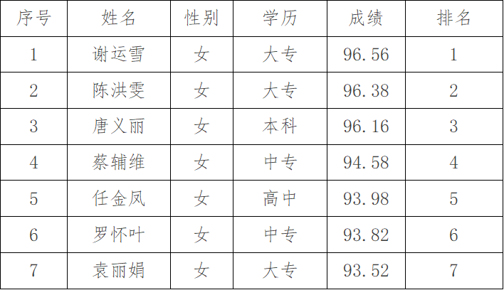 根據2024年1月2日發布的《貴州黔力實業有限公司公開招聘公告》中關于招聘芯繩工的招聘程序及有關要求,公司招聘工作領導小組在2024年1至3月對應聘人員經篩選、資格審核、面試、體檢等環節,擬錄用謝運雪等7人、張全信等8人共計15人(名單附后)為公司芯繩工操作崗位人員,現予以公示。公示期間,如對人選有異議,請向黔力公司綜合管理部反映。