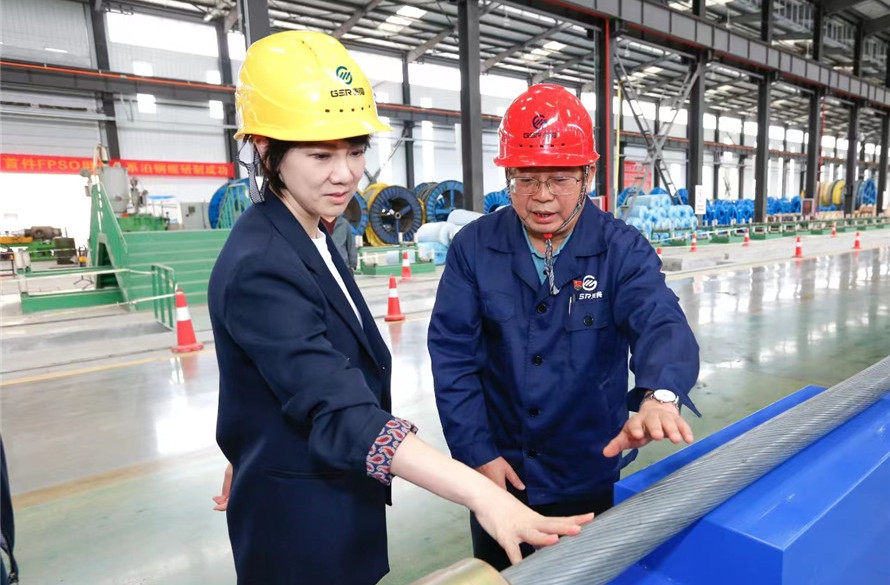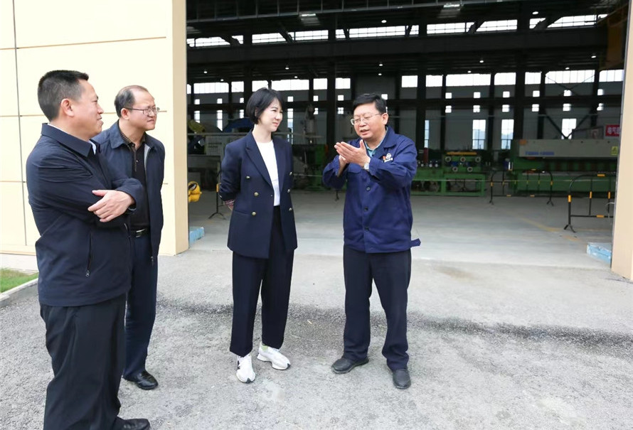 在新區生產現場,王小剛向曹鳴鳳介紹了公司學習貫徹習近平新時代中國特色社會主義思想主題教育、新區建設推進、生產經營和外貿運營等情況。