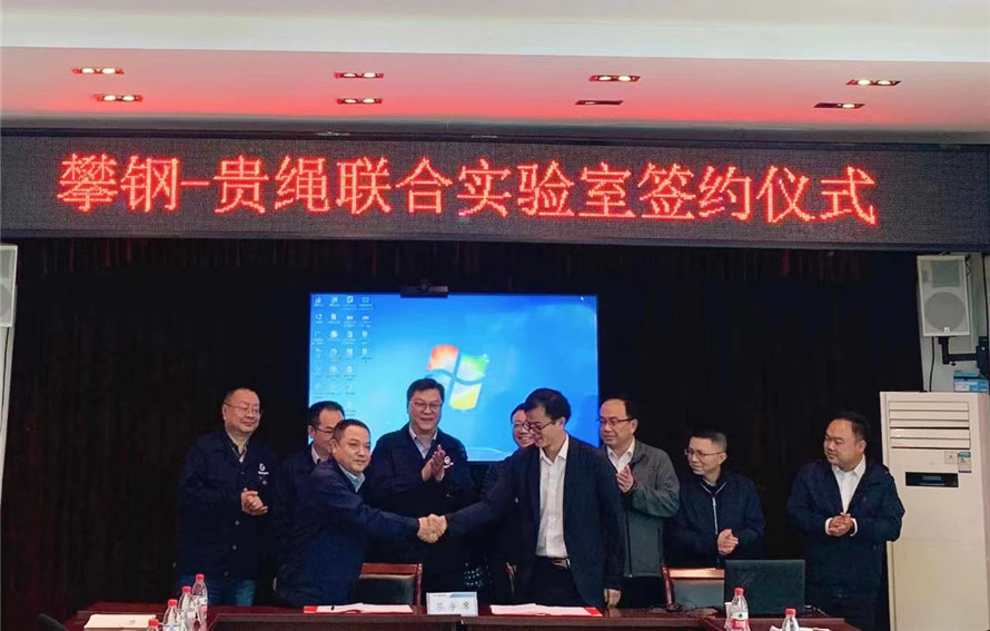 4月25日,貴繩與攀鋼聯合實驗室簽約儀式在貴繩股份公司舉行。攀枝花鋼釩有限公司副總經理郭華,貴繩股份公司總經理楊程,副總經理陳建輝、張成宇等出席簽約儀式。