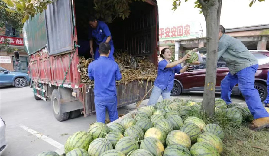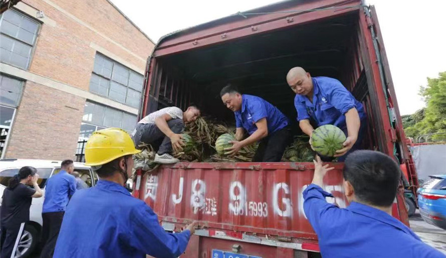 沿河縣泉壩鎮黃池村是公司鄉村振興幫扶點之一,公司領導在開展鄉村振興調研中,了解到該村種植的西瓜喜獲豐收,但銷售不暢通,公司決定從該村購買12000斤西瓜發放到職工手中,向生產一線職工送上一份清涼問候,同時也幫助解決了黃池村西瓜豐收后的銷售難題。