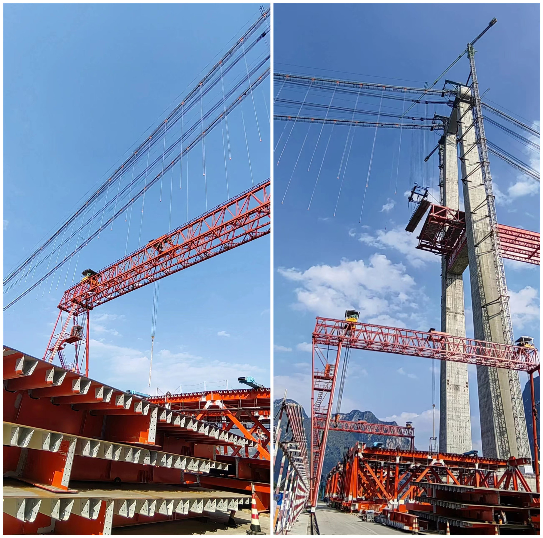 金秋十月,納晴高速牂牁江大橋建設如火如荼。10月22日,隨著最后一根吊索垂掛安裝到位,牂牁江大橋上的298根吊索全部完成安裝,取得階段性進展。