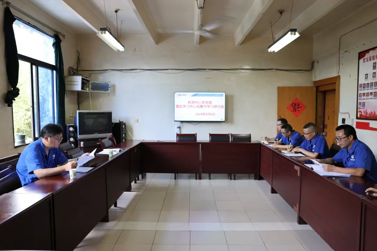 8月8日,集團公司黨委委員、股份公司總經理楊程列席旁聽檢測中心黨支部理論學習中心組學習研討會,與中心組成員、學習秘書、列席人員進行談話交流,現場查閱相關資料,并對學習研討進行指導。