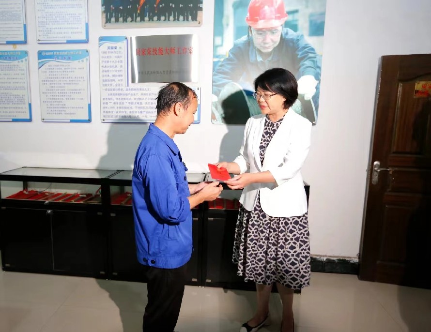 在國家級周家榮技能大師工作室,何薇與周家榮進(jìn)行了親切的交談,詳細(xì)了解了他的工作、生活情況,并送上節(jié)日祝福和慰問金,感謝他在工作崗位上作出的突出貢獻(xiàn),勉勵(lì)他保持先進(jìn)本色,充分發(fā)揮勞模示范帶動作用,引領(lǐng)廣大職工積極投身經(jīng)濟(jì)社會發(fā)展主戰(zhàn)場,在平凡的崗位上創(chuàng)造不平凡的業(yè)績,為推動企業(yè)高質(zhì)量發(fā)展做出應(yīng)有貢獻(xiàn)。