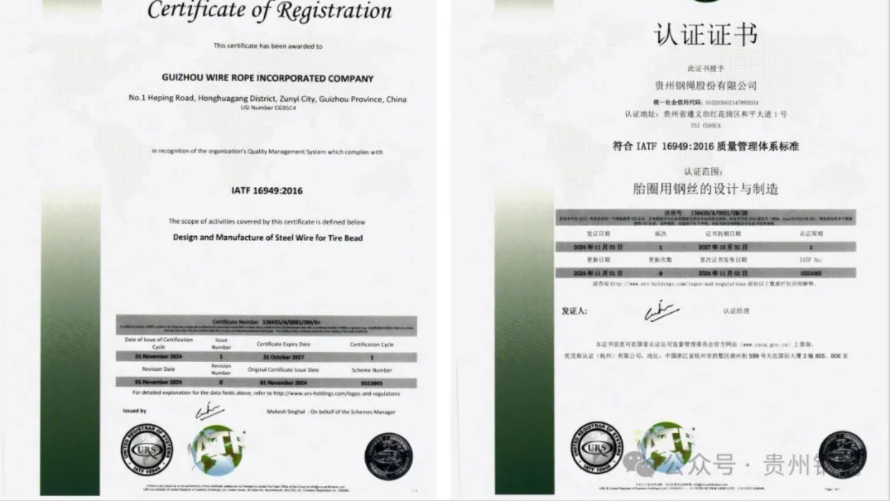 優(yōu)克斯認證(杭州)有限公司審核組依據(jù)IATF1694:2016《汽車生產(chǎn)件及相關(guān)服務(wù)件組織質(zhì)量管理體系 要求》以及公司體系手冊、程序文件、國家、行業(yè)或地方相關(guān)法律、法規(guī),采取抽樣方式,對公司領(lǐng)導(dǎo)層、單位和部門進行全面審核, 認為公司輪胎鋼絲產(chǎn)品的設(shè)計、開發(fā)、生產(chǎn)、檢驗等各個環(huán)節(jié)質(zhì)量控制有效,產(chǎn)品質(zhì)量符合國際標準和客戶要求,同意簽發(fā)IATF16949:2016認證證書。