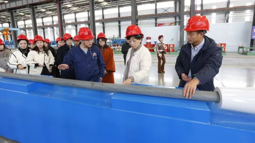 楊昆雅一行還參觀了貴州鋼繩生產指揮中心,周家榮國家級技能大師工作室,嚴尚仁勞模創新工作室和一分廠、四分廠、纜索工程公司生產現場,對公司生產經營、人才培養、產業工人隊伍建設、職工權益維護等進行了深入了解。