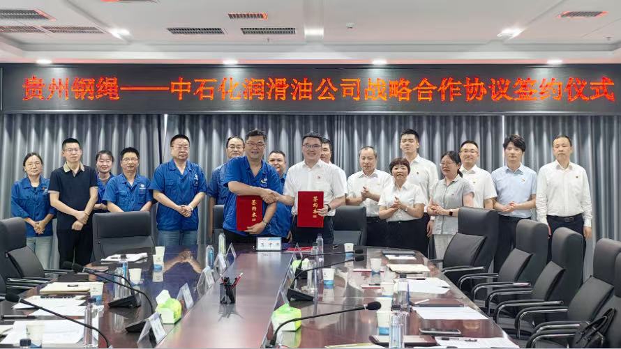 6月10日,貴州鋼繩股份有限公司與中國石化潤滑油有限公司簽訂戰略合作協議,并開展黨建聯建共建活動。中石化潤滑油公司合成油脂分公司黨委副書記、總經理李勇,黨委副書記、紀委書記段旭升,中石化國際事業重慶公司黨支部副書記婁方毅,貴繩集團黨委委員、股份公司總經理楊程,股份公司副總經理等參加戰略合作協議和黨建聯建共建協議簽約儀式。