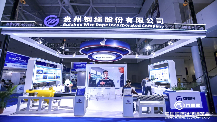 貴州鋼繩作為本次博覽會的重要展商之一,在5號館A07海洋能源展區展出了FPSO用永久系泊纜(雙護套)、智慧鋼纜、深海探測鎧裝纜、浮式風電鋼纜、高強度高釩密閉索、世界最粗6股鋼絲繩、高強度耐疲勞壓實股鋼絲繩、阻旋轉鋼絲繩、吊裝繩圈等產品。