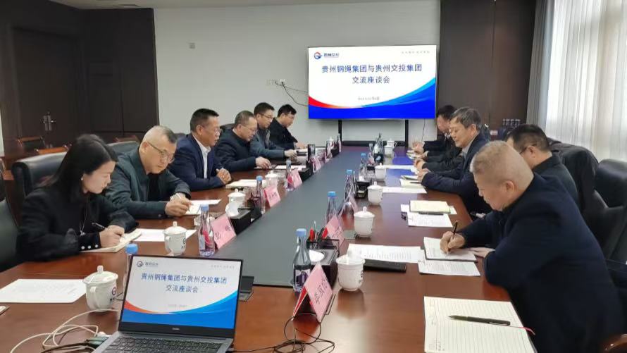 12月8日,貴繩集團公司黨委書記、董事長馬顯紅到貴州交通投資集團走訪,與貴州交通投資集團黨委書記、董事長袁泉進行交流座談。貴州交通投資集團黨委委員、副總經(jīng)理、總會計師王勁松,黨委委員、副總經(jīng)理韓洪舉,貴州交通建設(shè)集團黨委書記、董事長張杰,貴州交投產(chǎn)業(yè)集團黨委副書記、董事、工會主席彭梅,貴繩股份公司副總經(jīng)理陳建輝等參加座談交流。