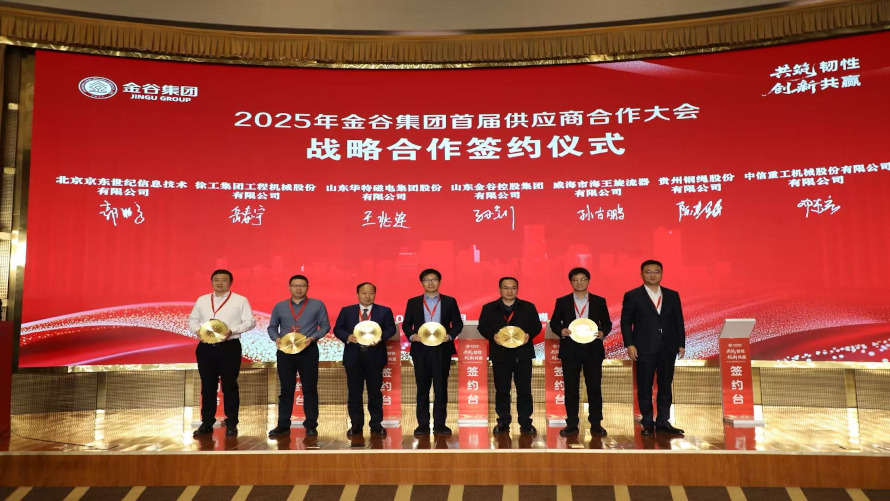 會上,金谷集團精準對接產業鏈上下游優質資源,分別與2家戰略技術支撐高校、6家戰略技術合作設計院、6家戰略級供應商及18家A級供應商完成簽約,并舉行了授牌儀式。貴繩股份公司作為唯一受邀參與的鋼絲繩行業企業,成為6家戰略級供應商之一。