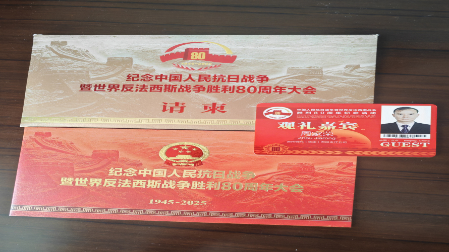 公司職工周家榮受邀參加紀(jì)念中國(guó)人民抗日戰(zhàn)爭(zhēng)暨世界反法西斯戰(zhàn)爭(zhēng)勝利80周年大會(huì)