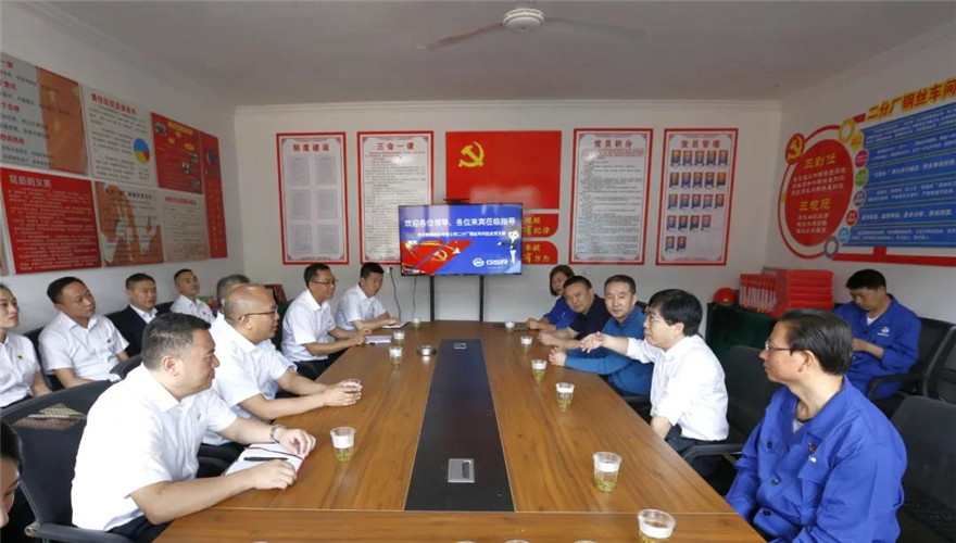 在二分廠鋼絲車間拉絲黨支部學(xué)習(xí)室,黨支部負(fù)責(zé)人介紹了黨建工作成效及特色亮點(diǎn)。王朝義、姚正強(qiáng)及雙方黨務(wù)工作者圍繞如何加強(qiáng)黨的建設(shè)進(jìn)行了座談交流。