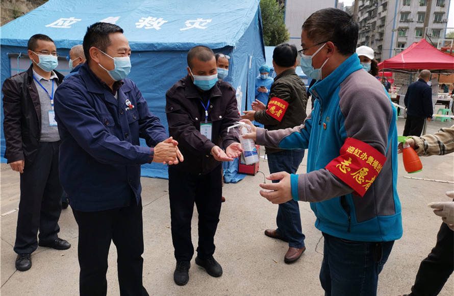 當天早上7點,貴繩社區的11名工作人員趕到現場做好各項準備工作。遵義市公安、城管及迎紅街道辦事處的20名工作人員,貴繩集團公司直屬黨委、工會、生產分廠、各部室派出的45名志愿者7點半準時到場,在社區管理人員統一安排下各就各位,協助赤水團隊12名醫務人員開展第三輪核酸采樣工作。社區職工及其家屬、周邊居民有序登記入場,按照1米線要求排成5條縱隊依次進行掃碼登記、核酸采樣。