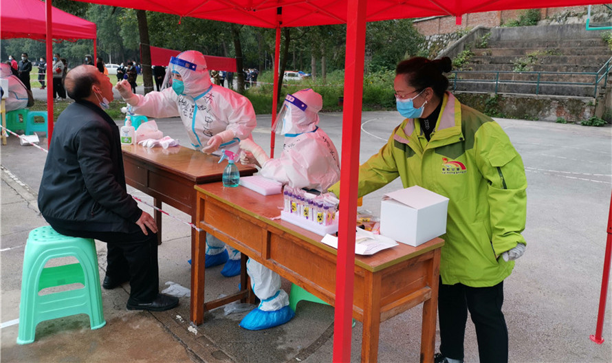 10月27日,貴繩社區5個核酸采樣點第三輪核酸采樣在大操場燈光球場如期進行。