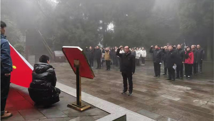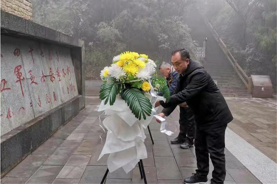 馬明剛、梁鵬與直屬黨委第四黨支部的黨員們參觀了婁山關紅軍戰斗遺址及其陳列館,為抗日戰爭犧牲的革命先烈敬獻花籃,回顧了婁山關紅軍戰斗的光榮歷史,緬懷革命先烈,舉行重溫入黨誓詞宣誓,以弘揚長征精神,走好新時代趕考之路。