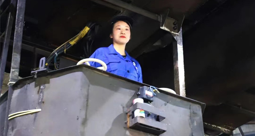 天車工的工作環境和作業條件比較艱苦,夏天熱氣上沖,天車里像蒸籠,一個班下來,整個人像從水里爬出來一樣,全身上下都被汗水濕透了。冬天像冰窯,凍得手腳都失去了知覺。工作看似清閑,實際是個累活兒,生產任務繁重時,忙得吃飯上廁所的時間都沒有,長時間注意力高度集中引起精神過度疲勞,一天工作結束,連下天車的勁兒都沒了。2017年至2018年,車間人手緊缺,生產任務重,陳富玉攬下了兩人的活,在兩條生產線上來回穿梭,一個人就這樣堅持了近兩年,從來不敢休假,因為她知道自己一旦休假,就會影響生產。她說:“我多吊一鉤,工段產量就多增加一些,就能為企業多創造效益,辛苦點沒啥?!倍嗄甑奶燔嚬ぷ?,讓陳富玉的頸椎、腰椎落下了疾病,但她沒有向領導提過任何要求,憑著一股不服輸的韌勁,始終堅守在崗位上,從未發生過違章及安全事故,成為了天車司機中的佼佼者,多次被公司評為“優秀先進女職工”、“三八紅旗手”。去年,公司舉辦天車工技能比武大賽,她獲得了第一名,同時被評為“技術明星”。