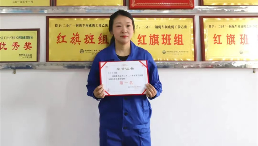 2010年,23歲的陳富玉加入了貴繩這個大家庭,被分配到二分廠成為一名天車工。第一天走進生產現場,映入眼簾的是一排排整齊的設備不停地轉動,發出巨大的噪聲,難聞的油脂味彌漫在空氣中,還有在車間來回滑動的天車,像一個巨型怪獸。想想以后就要在這樣的環境中工作,她就心生恐懼,有了打退堂鼓的念頭。但生性好強的她心想:總不能來一趟就當逃兵??!無奈之下,只好硬著頭皮上了行車。在十幾米的高空,她感到頭暈目眩,不敢向下看。一個月下來,她都無法適應這項工作,更別說學習行車操作技術了。師父有些氣惱地對她說:“你這樣偷懶是不行的,和你一起分配下來的天車工都能獨立操作了,而你連最基本的起吊都還沒有學會,不想干就趁早走人!”聽了師父的話,她覺得真的很丟臉,一股熱血直沖腦門:“同樣都是女孩子,別人能干的我也能干!”就這樣,她努力克服了心理障礙,憋著勁用心學習操作技術。別人都下班了,她還在一遍一遍練習起吊技巧。工友來換班,她竟然覺得原來在高空中難熬的時間過得好快。她還驚奇地發現,當注意力都集中在操作上時,什么恐懼都沒了,難聞的油脂味也都消失了。離開天車,她腦海中還在反復回放操作流程。漸漸地,她適應了工作環境,熟練掌握了天車起吊技術,吊運物品平穩,定位精準,一套起吊動作干凈利落,從不拖泥帶水。工友們都向她豎起了大拇指,師父也露出了欣慰的笑容。