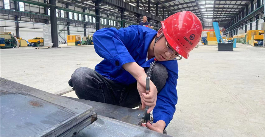 剛從學校邁入社會,譚威一時間還不適應角色的轉換,他性格靦腆,話不多,但干起工作來嚴謹認真,十分老道。初來乍到,對生產現場不了解,他就成天在車間轉,了解每臺設備的性能、運轉情況、產能及能耗等。雖然大學學的是機械工程專業,但理論與實踐融合得少,真正要把所學的知識運用到工作中還需結合工作實際,不斷探索。遇到不懂的,他就主動向工友們請教,也許他們學歷沒他高,但他尊重實踐經驗比他豐富的工友們,哪怕比他先進廠一天,他都真誠地叫他們“師父”。只要現場有設備維修、維護、點檢,他都去幫忙,從設備的拆卸、零部件更換、維修、再到設備組裝,雖然很累,但工作的過程也是學習的過程,他很快熟悉了分廠所有生產設備的機械性能。但他并沒有就此滿足,作為機械技術人員,不光是保證設備能正常運轉,更重要的是提高設備性能和生產效率。因此,工作不忙時,如何提高設備自動化、智能化水平,如何減輕職工勞動強度,如何提高設備安全性能等問題成為他的工作重心。在包裝生產現場,他發現工字輪拆卸需要兩人聯合操作才能完成,費時費力不說,還存在一定的安全風險。仔細查看了拆卸裝置后,他參與設計出一款新型工字輪拆卸裝置,把工字輪板抓取和提升兩道工序一體化、自動化,拆卸工字輪方便快捷,操作簡單,原本由兩人操作的工字輪拆卸,現在一個人就可以獨立完成,原來人工拆卸一個工字輪需要3分多鐘,現在機械拆卸只需一分多鐘就可以完成,大大降低了職工勞動強度,避免了人工操作的安全風險,實現了包裝工序自動化,為新區設備自動化、智能化作好了技術儲備。