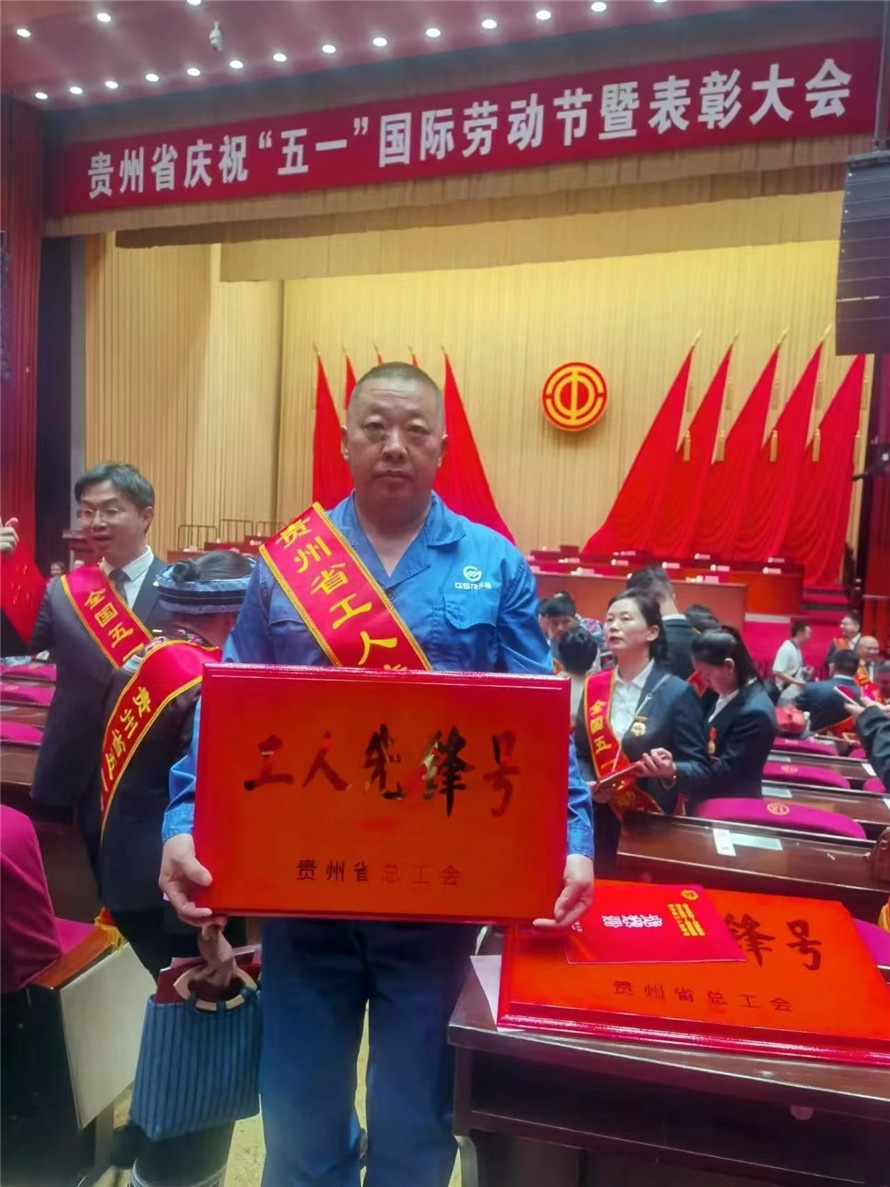 班長(zhǎng)楊洪進(jìn)領(lǐng)取“貴州省工人先鋒號(hào)”獎(jiǎng)牌