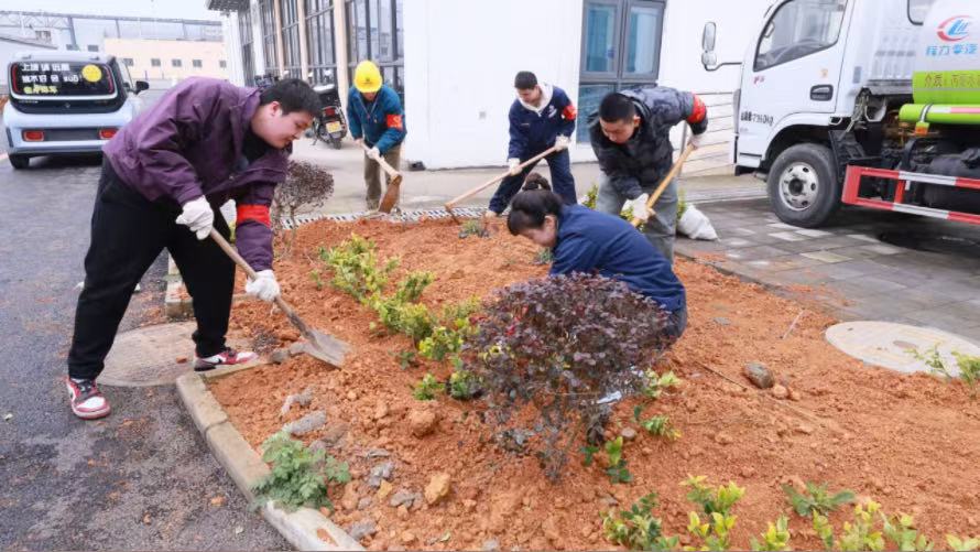 在新區植樹現場,大家分工明確,配合默契,揮鍬鏟土、扶苗填坑、踏土夯苗,每道工序都有條不紊,呈現出一派熱火朝天的勞動景象。