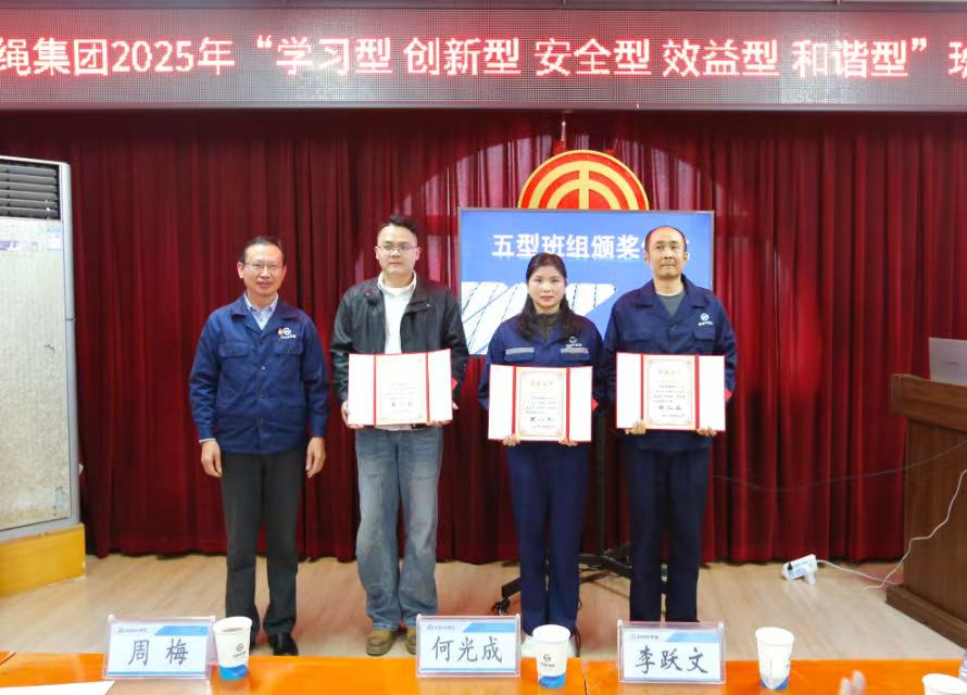 經評定,一分廠鋼絲車間拉絲丁班獲一等獎;一分廠粗繩車間維護一班、二分廠鋼繩車間成繩乙班、二分廠鋼繩車間股繩二區乙班獲二等獎;一分廠鋼絲車間電鍍乙班、二分廠鋼繩車間成繩甲班、三分廠拉絲甲班、四分廠拉絲甲班、五分廠電梯繩丙班、纜索工程公司丙班獲三等獎。