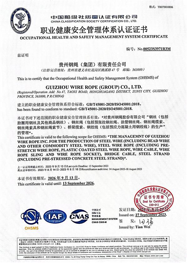 職業健康安全管理體系認證證書