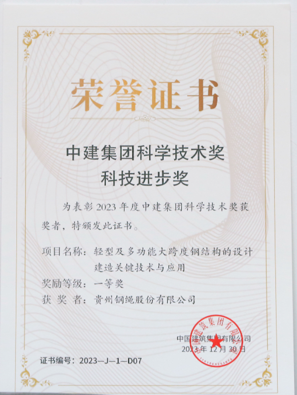 中建集團(tuán)科學(xué)技術(shù)獎(jiǎng)科技進(jìn)步獎(jiǎng)