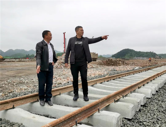 馬顯紅首先對在建的涉鐵工程一、二標段進度情況進行實地調研,在施工現場認真聽取了一標段營盤山高邊坡機械土石方機械開挖工程、高邊坡支檔防護工程、牽出線接觸網、軌道鋪設、橋涵工程等的實際完成情況匯報。