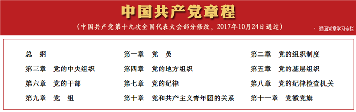 第三十九條 黨的紀律是黨的各級組織和全體黨員必須遵守的行為規則,是維護黨的團結統一、完成黨的任務的保證。黨組織必須嚴格執行和維護黨的紀律,共產黨員必須自覺接受黨的紀律的約束。